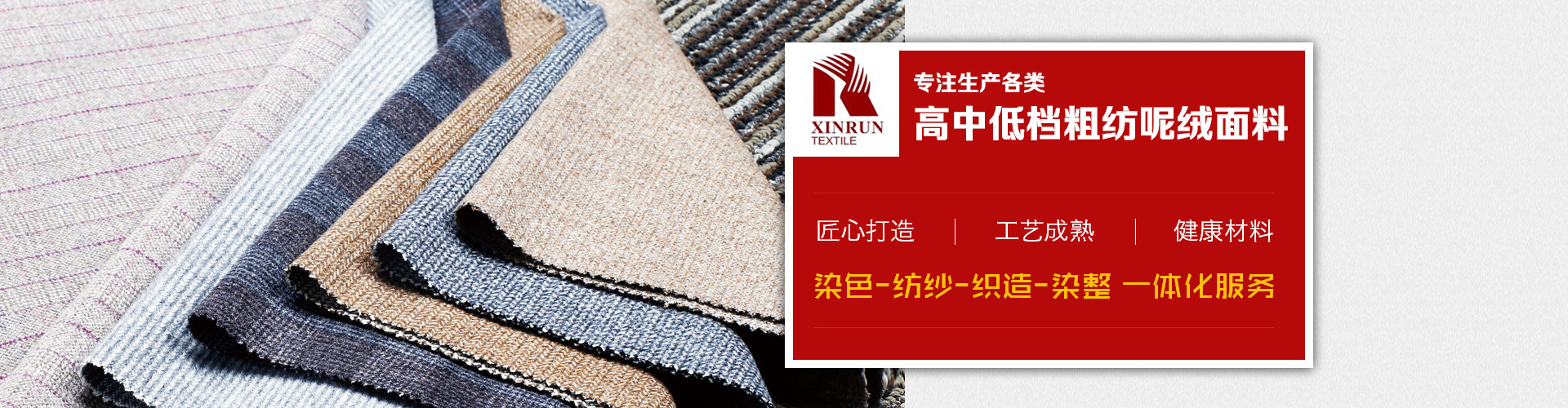 上海鑫潤紡織品有限公司是一家從事開發(fā),生產(chǎn),銷售為一體的毛紡面料公司,公司生產(chǎn)各類高中低檔粗紡呢絨面料,并下轄控股毛紡廠3家,擁有先進(jìn)的生產(chǎn)設(shè)備和的管理體系,不僅在國內(nèi)市場(chǎng)享有良好地信譽(yù),而且產(chǎn)品遠(yuǎn)銷美國,歐洲,俄羅斯,韓國,日本等不同國家,贏得了國外市場(chǎng)的一致好評(píng)。憑借優(yōu)良的品質(zhì),良好的信譽(yù),我公司還是ZARA,H&M,C&A,JACK&JONES,MANGO,TARGET,PROMODE,ORSAY等國外知名品牌的供應(yīng)商。